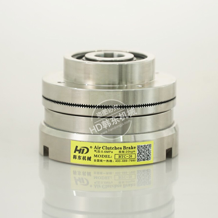 1、BTC型(齒合式)氣動離合器是由兩枚平面齒盤在通氣時,內(nèi)部軸向移動來齒合連接,泄壓時由復(fù)位彈簧自動分離。