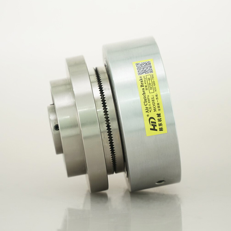氣動(dòng)離合器HTP產(chǎn)品采用兩枚全周帶齒輪的圓盤在氣壓作用下咬合傳遞穩(wěn)定轉(zhuǎn)矩,體積小,傳動(dòng)力矩大,能在高速運(yùn)轉(zhuǎn)中快速脫離,能適應(yīng)較惡劣的工況條件即便是油污環(huán)境亦能正常工作,不會(huì)影響其工作性能。齒合時(shí)基本無滑差,傳動(dòng)精度更好,傳動(dòng)轉(zhuǎn)矩與溫度無關(guān),與電磁離合器相比能在高速旋轉(zhuǎn)中聯(lián)接和放開
