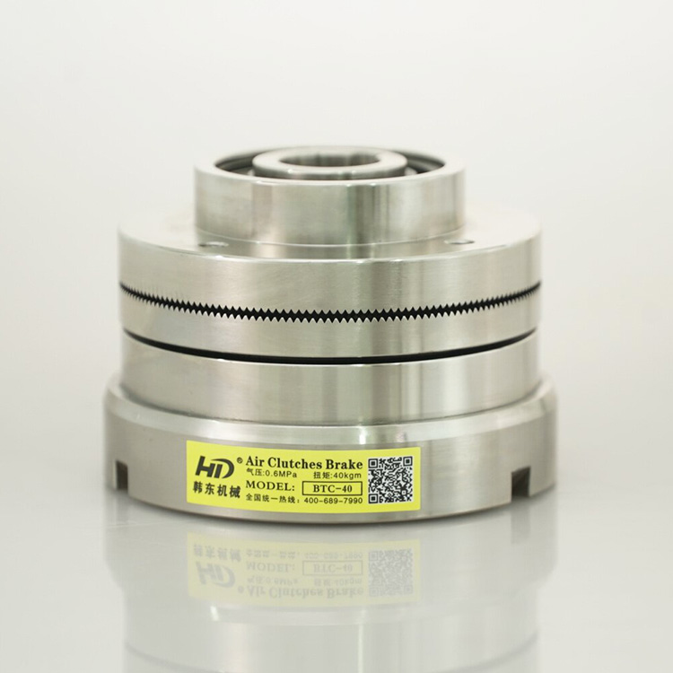 Pneumatic tooth clutch through driving tooth plate and driven tooth plate engagement, small size while transmit torque is several times than other mode air clutch. It can transmit 1:1 torque and no residual. Engagement and release in moment, action flexible and fast. Engagement structure and easy installation.
