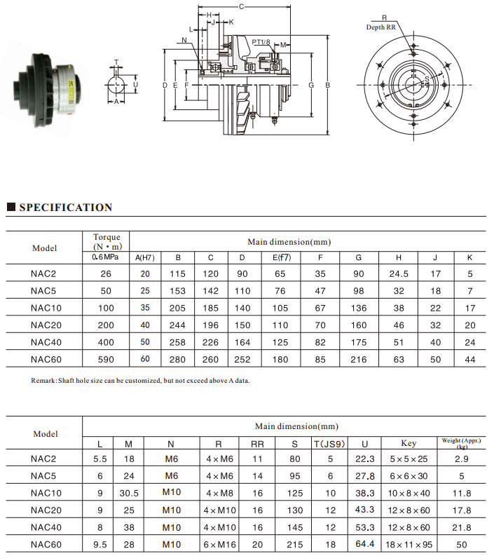 This NAC model air shaft friction plate clutch can replace HDC model friction disc clutch well. This air shaft clutch is widely used in rubber machine rollers, conveyor, elevator, handling machinery, food machinery, printing machinery, crusher, motor, tire and rubber machinery, packaging machinery, forming machinery, automatic machinery, wire machinery, sheet metal machinery, filling machinery, plywood machinery, medical machinery, stretching wire machinery, fiber machinery, metalworking machinery, pulverizing machinery, tire forming machinery, paper making machinery and etc.