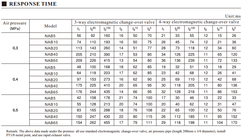 4) Screw bolt tightening torque: NAB5, 2.5N.m; NAB10, 4.3N.m; NAB20, 8.2N.m; NAB40, 20N.m; NAB65, 29N.m.