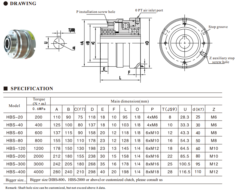 HBS model Pneumatic tooth clutch Characaters: